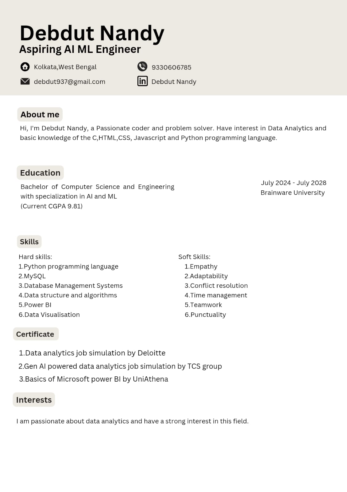 Hello! I'm Debdut Nandy, a developer based in Kolkata. I build web apps with a focus on performance, accessibility, and a polished user experience. I'm currently learning Machine learning algorithms and exploring NLP.